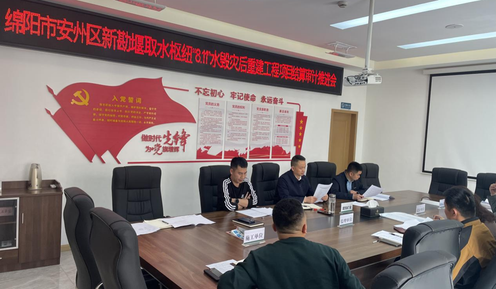 4月7日,公司組織召開綿陽市安州區新堪堰取水樞紐“8.11”水毀災后重建工程項目結算審計推進會。(素材來源:工程項目部 辛佳洋)