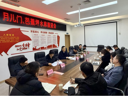 12月5日,集團組織召開月兒門、芭蕉坪水庫推進會。集團黨支部書記、董事長袁波,黨支部委員、總經理楊婷婷、副總經理馮文生及設計單位參加。