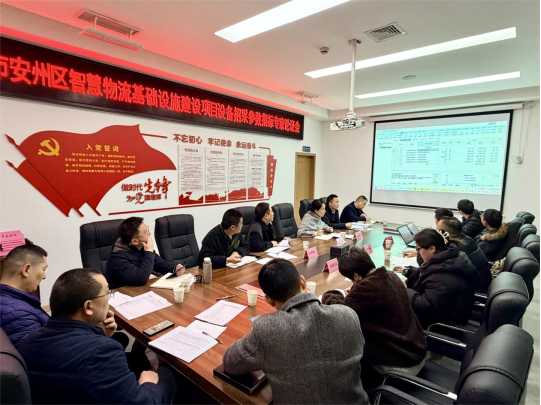 12月4日,集團組織召開安州區智慧物流基礎設施建設項目第一次項目推進會。集團黨支部書記、董事長袁波,副總經理馮文生參加。(素材來源:黨群行政中心 李雯)